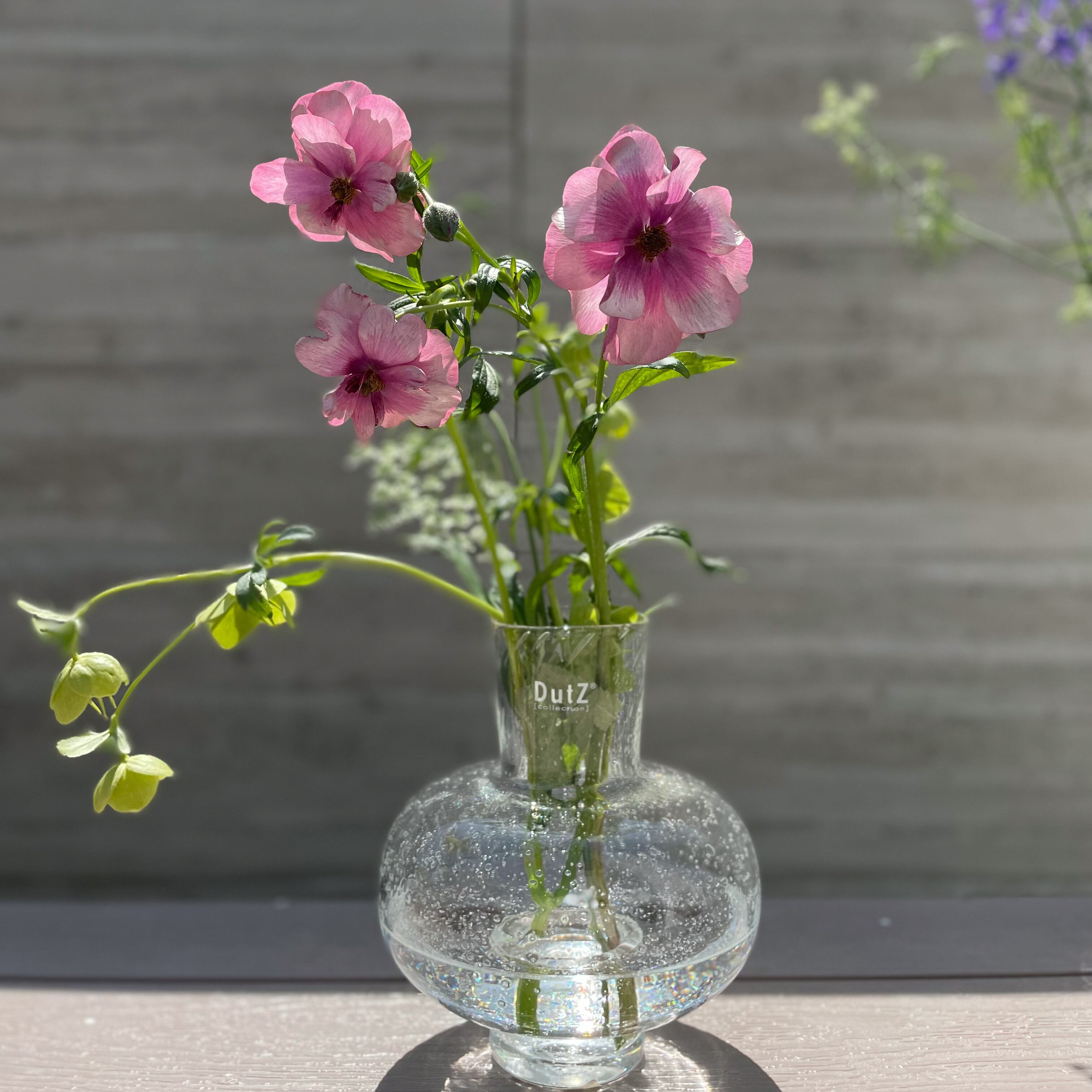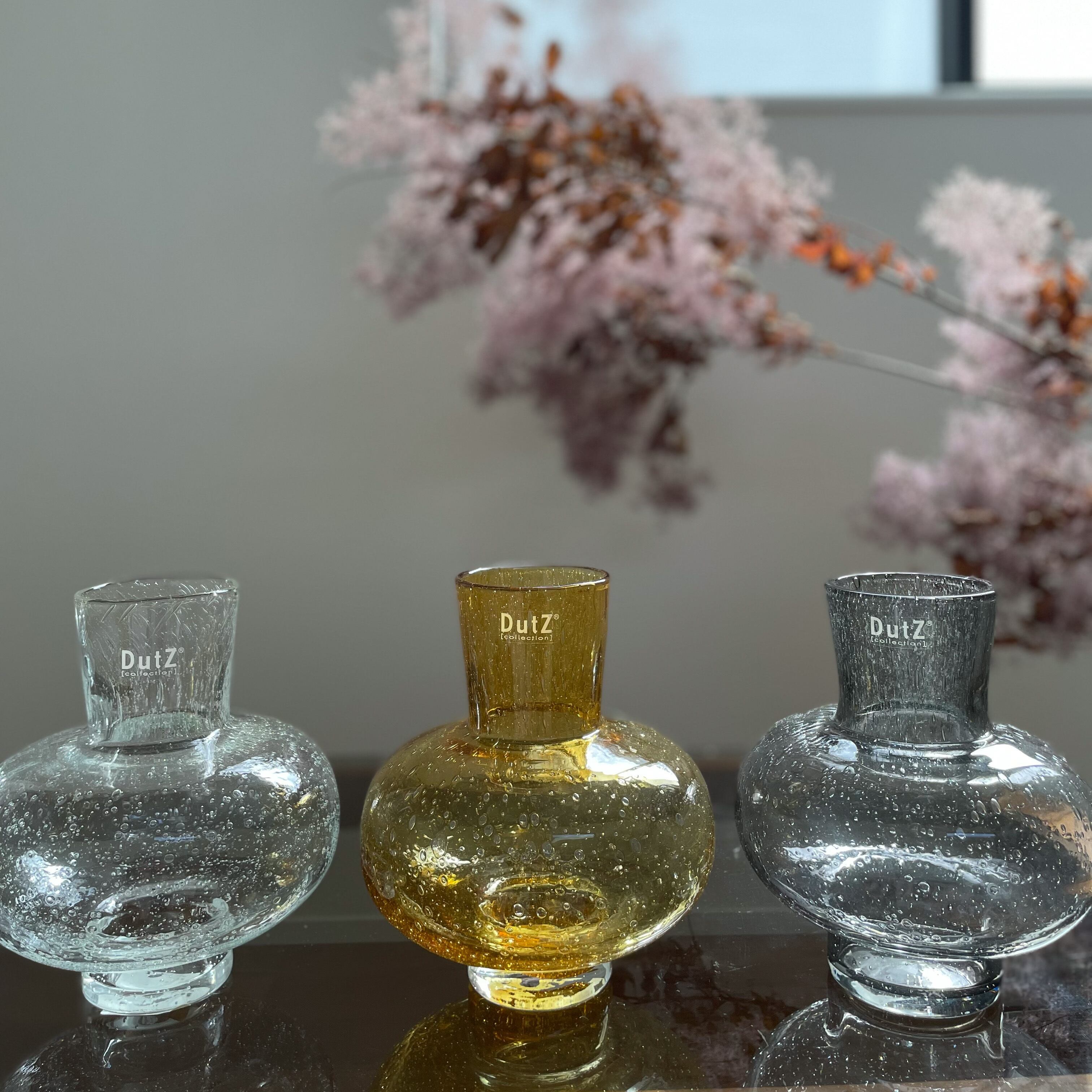 丸みを帯びたデザインとガラスの気泡が美しく、シンプルながら目を惹く洗練されたデザインのフラワーベースです。