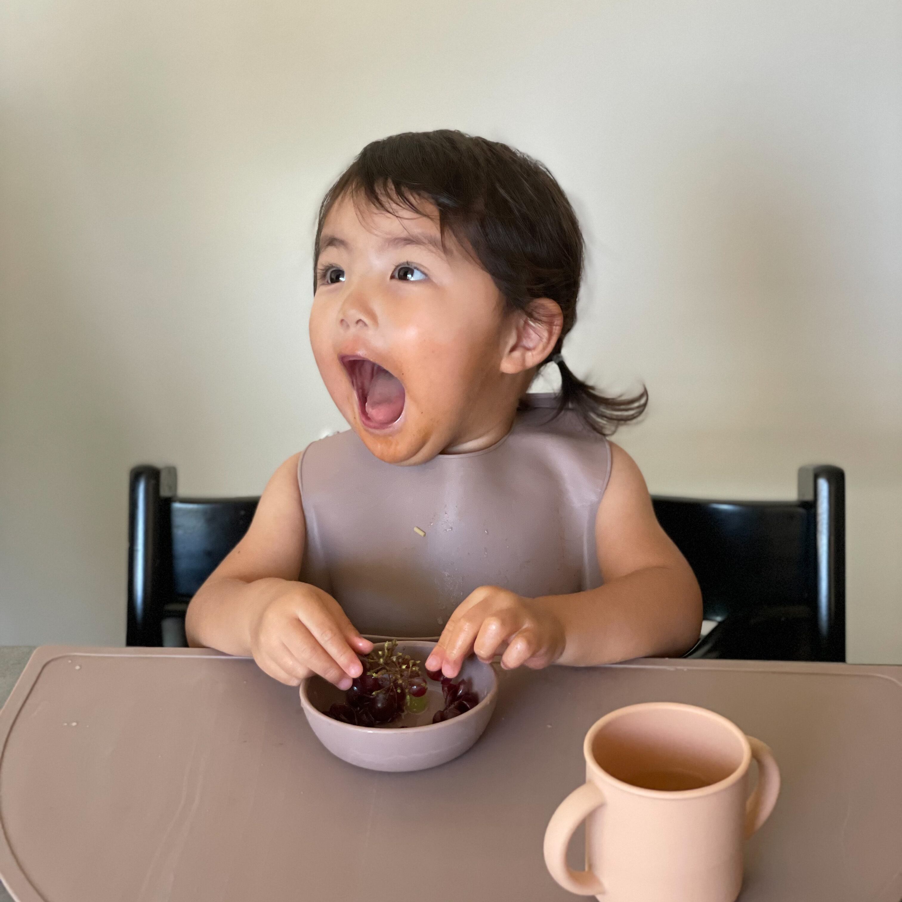 汚れを防ぐ胸周りと、食べとぼしをキャッチするポケット部分には適度な硬さがあり、首周りは柔らかく痛くならない設計のシリコーンビブです。首のフック部分はしっかりと止まり、穴から勝手に抜け落ちない様になっています。さらに、穴の部分は繰り返し使っても緩んだり、破れない様に強度を高めています。