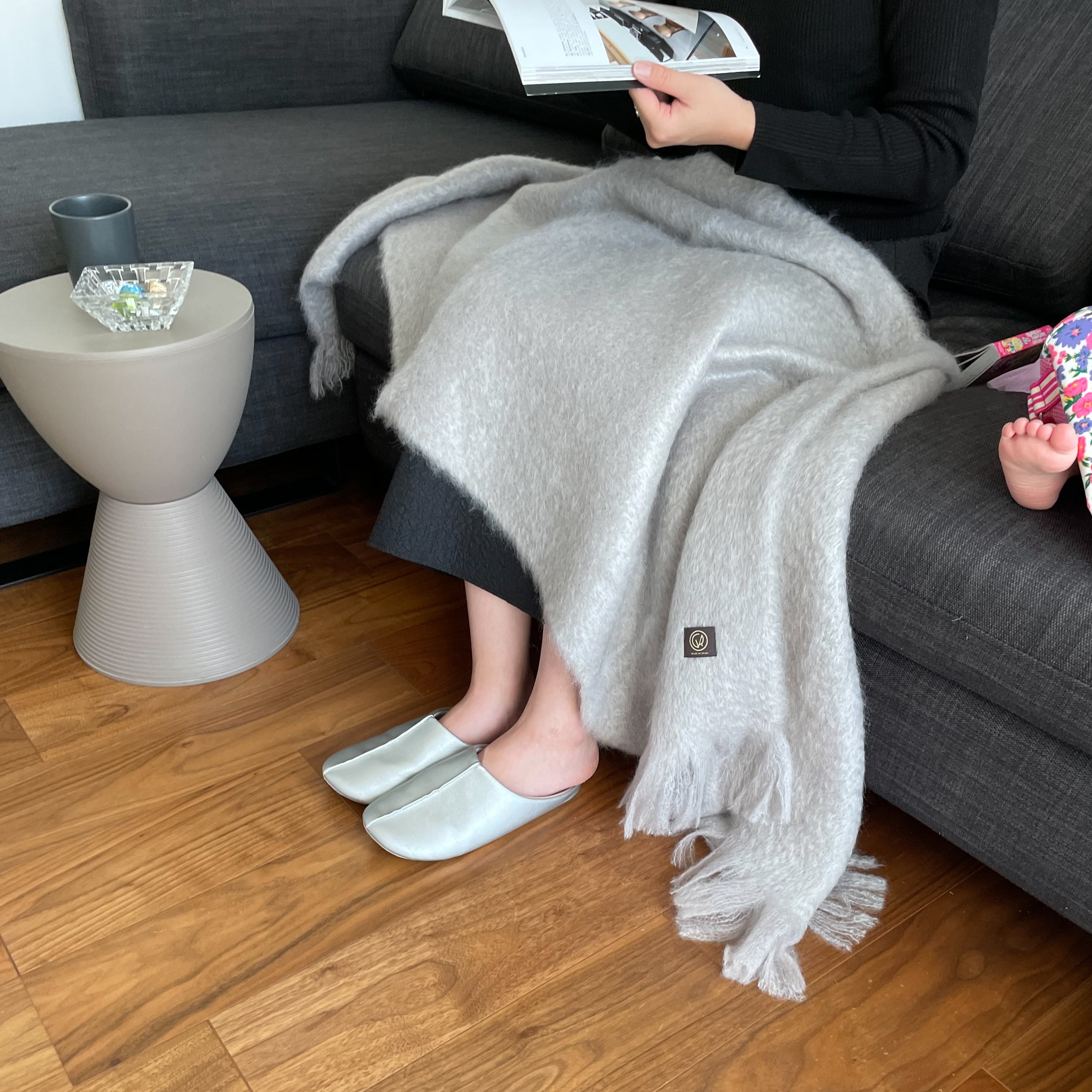 艶のある生地とふわふわな肌触りのモヘアブランケット